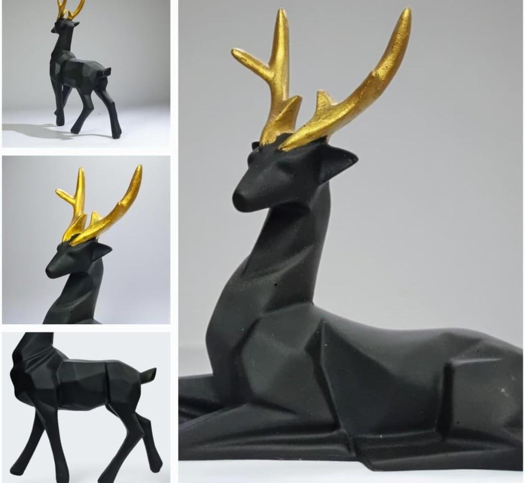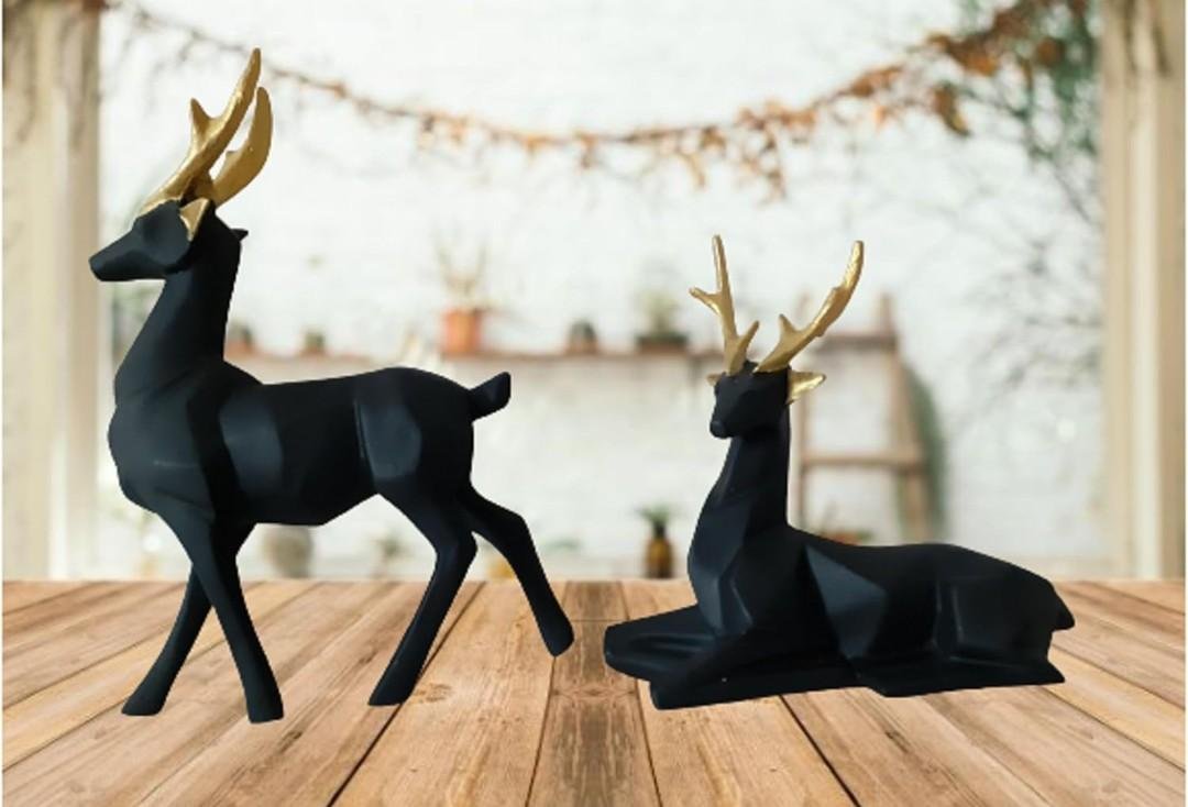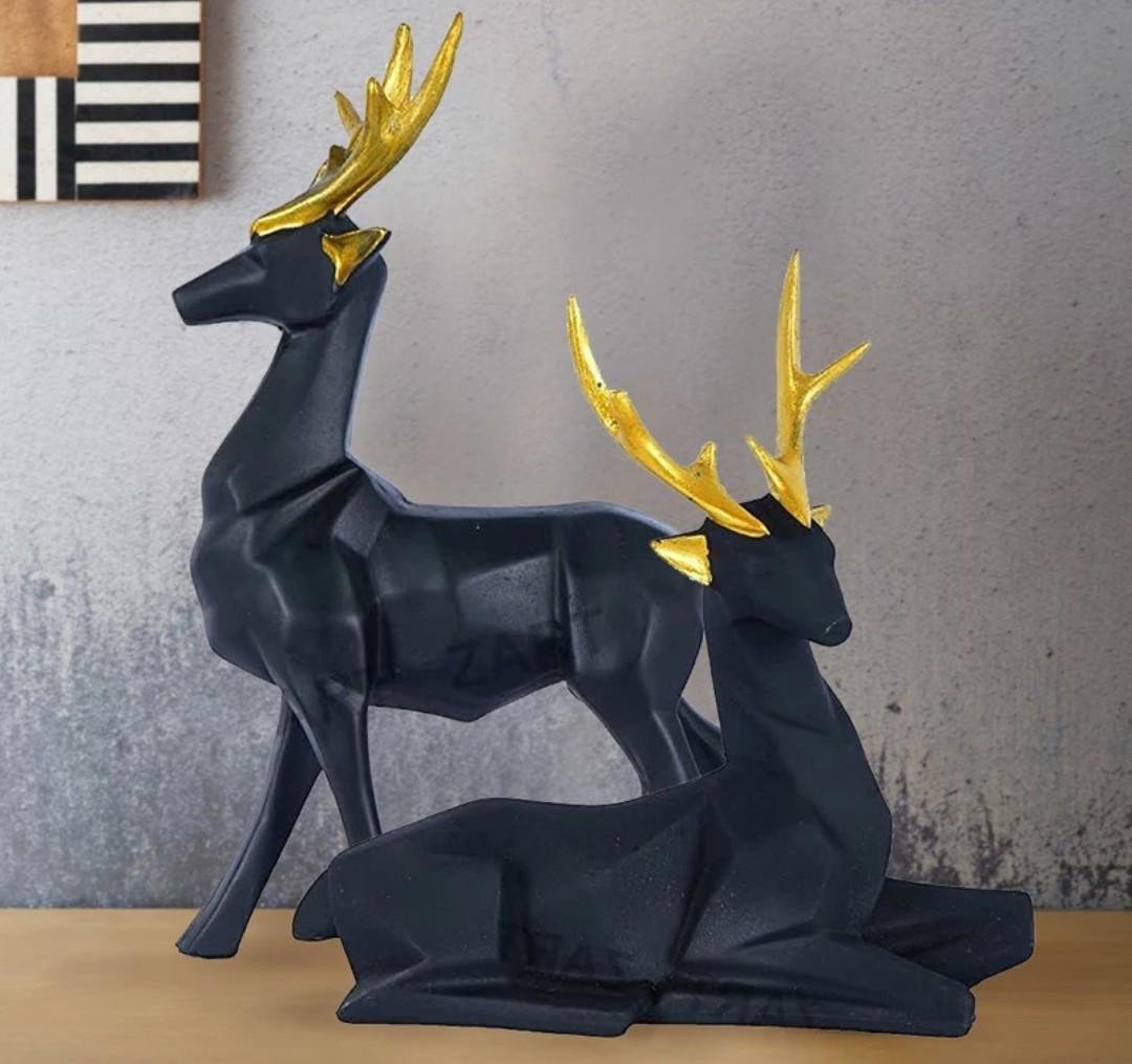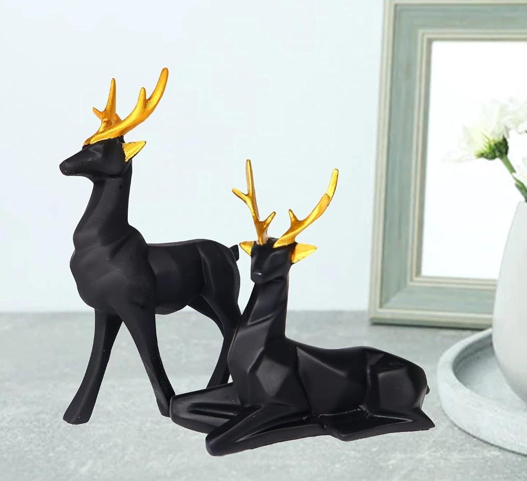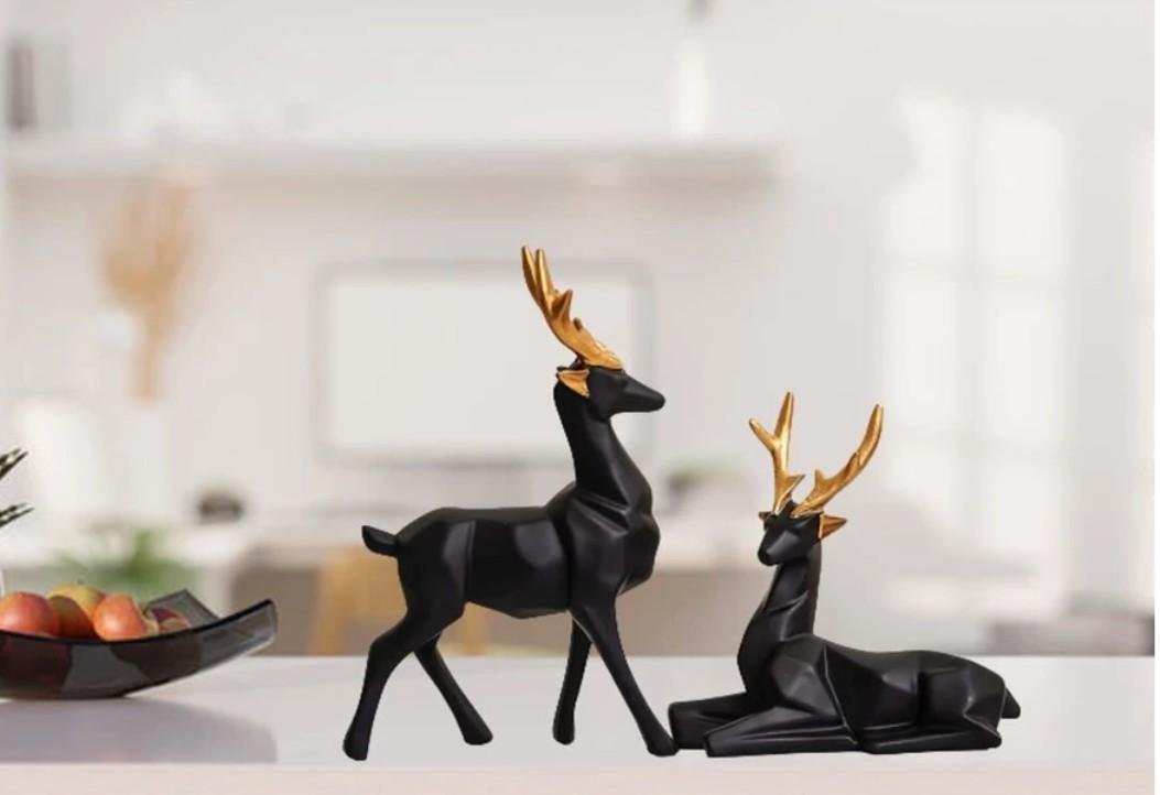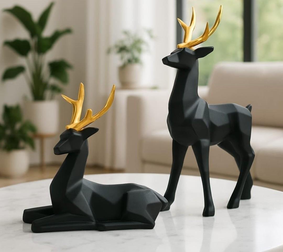- Modern Geometric Design – This pair of deer figurines features a sleek matte black finish with angular contours and golden antlers, adding a touch of luxury to any space.