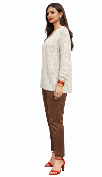 Stay cozy and stylish with this Beige or White Textured Sweater, designed to add warmth and elegance to your winter wardrobe. The soft knit fabric and beautiful textured pattern give it a modern and comfortable look. Perfect for casual outings, office wear, or everyday winter fashion, this sweater pairs effortlessly with jeans, skirts, or trousers for a chic and relaxed style.
