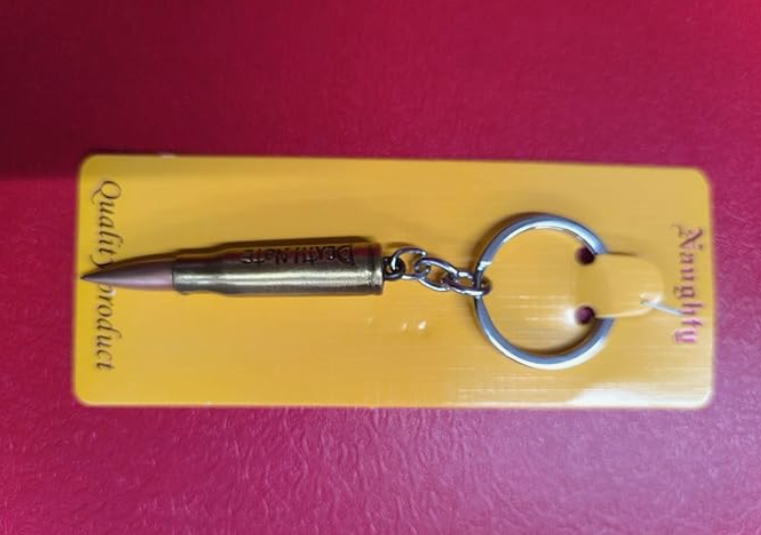 Big Gun Bullet Death Note Round Head Rifle Bullet Keychain Keyring Key Holder for Bike Car and Home(Golden)