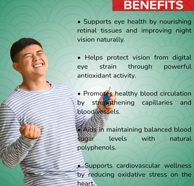 - MAINTAIN EYE HEALTH, IMPROVING BLOOD FLOW, IMPROVE NIGHT TIME VISION, LOWER BLOOD SUGAR AND CHOLESTEROL LEVELS, REDUCE EYE STRAIN & FATIGUE