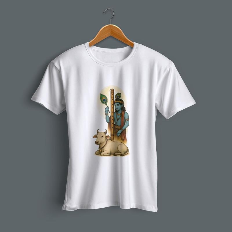 Bring divinity to your style with this Shree Krishna Typography Printed T-Shirt. Made from 100% soft cotton, this white tee is lightweight, breathable, and perfect for daily wear or festive occasions. The bold Krishna design adds a spiritual yet trendy vibe — ideal for Krishna lovers, bhakts, and fashion-forward men. Pair it with jeans or traditional wear and stand out with devotion and style.