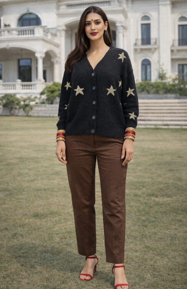 • Stylish black cardigan with gold star pattern