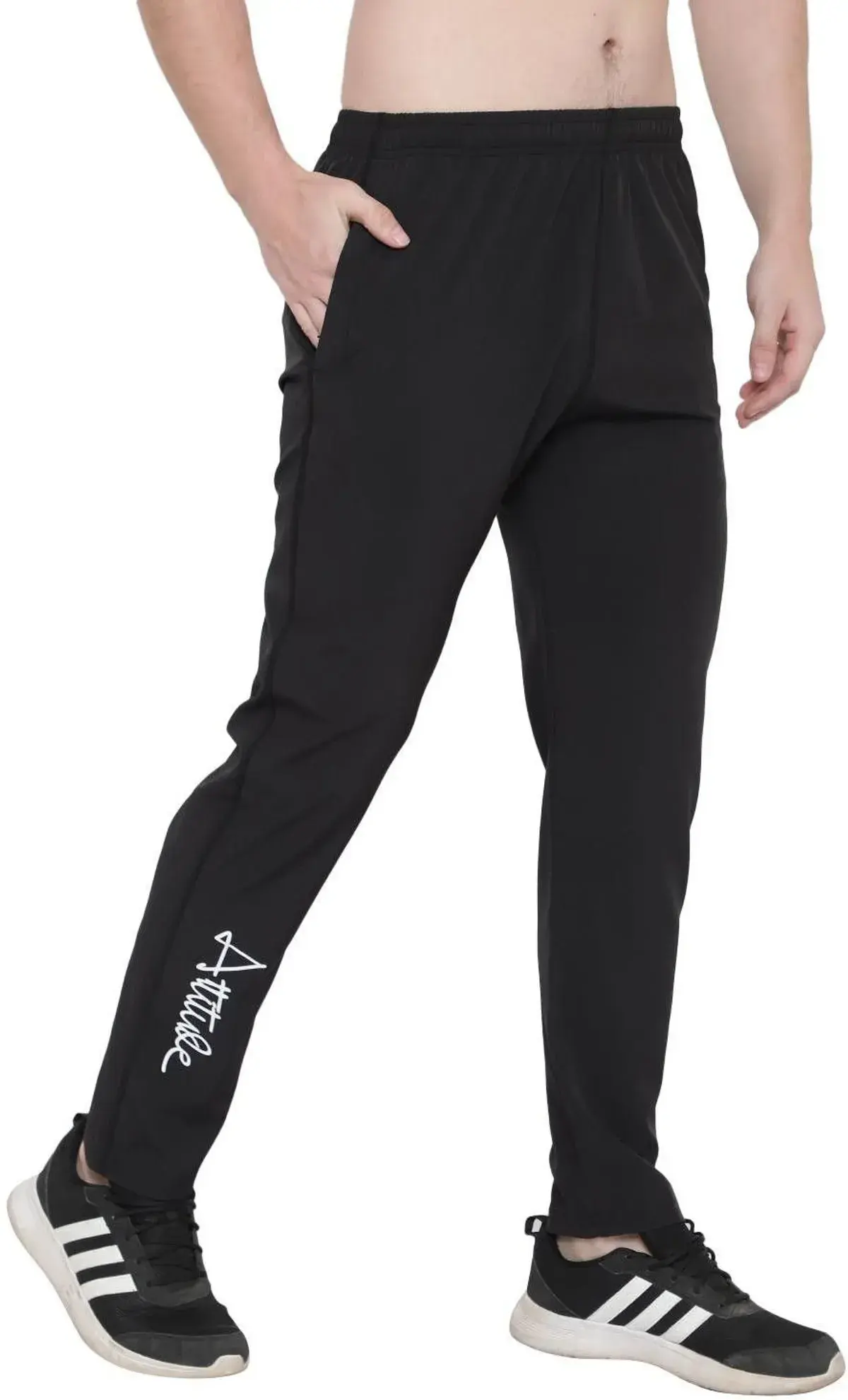 Experience comfort and flexibility with these black solid track pants for men. Made from a premium lycra blend fabric, these pants provide excellent stretch and durability, making them ideal for both active and casual wear. The elastic waistband offers a secure and adjustable fit, ensuring ease of movement throughout the day. With a sleek solid design and sporty appeal, these track pants are perfect for workouts, jogging, sports, or everyday use.