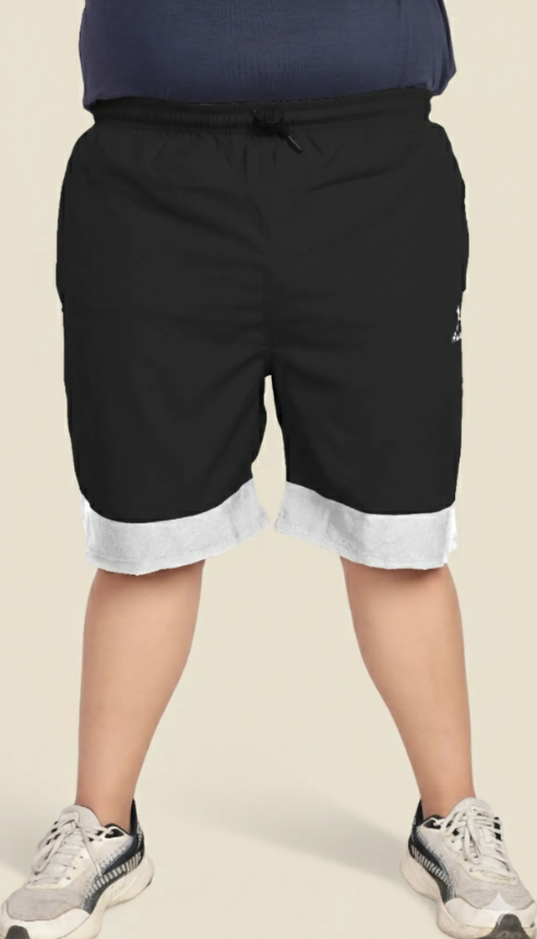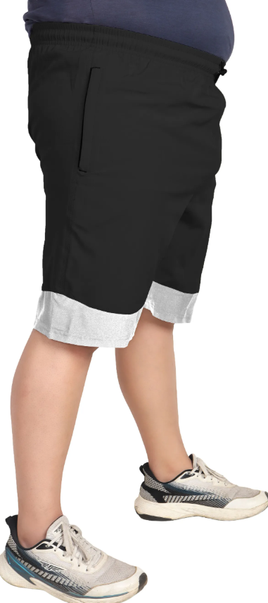 Black Lycra Blend Polyester Elasticated Solid Shorts For Men