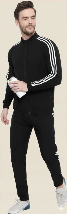 “Black Polyester Blend Regular Track Suit For Men”