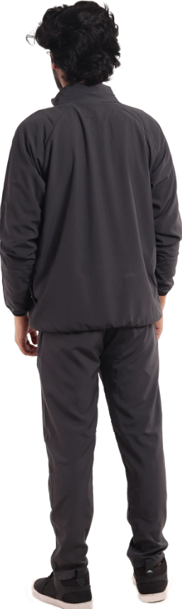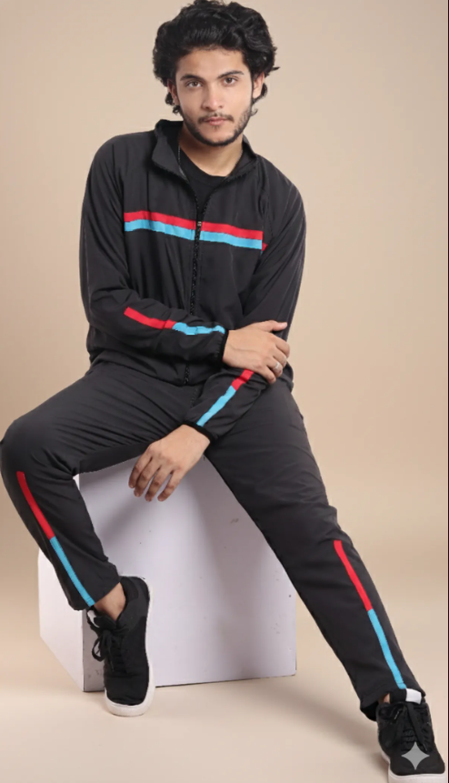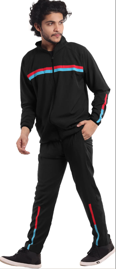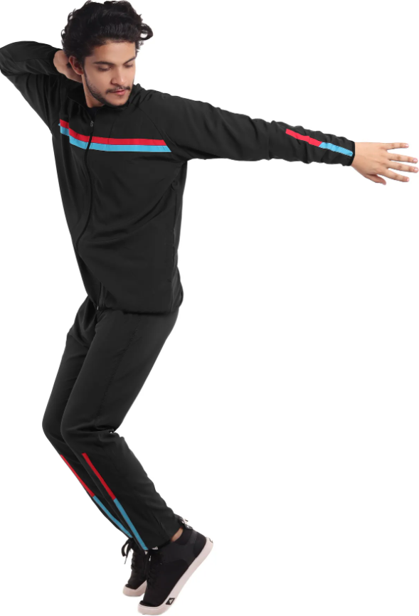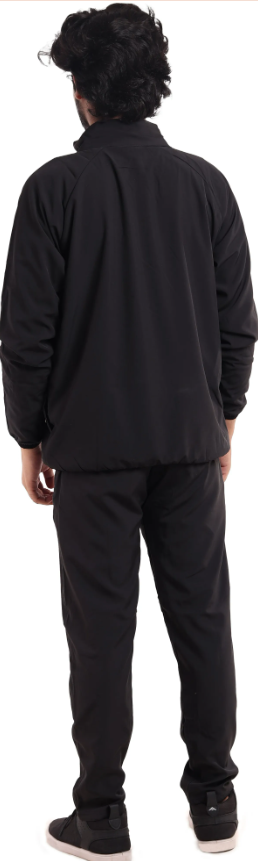 Black Polyester Lycra Blend Zip Solid Tracksuit for Men