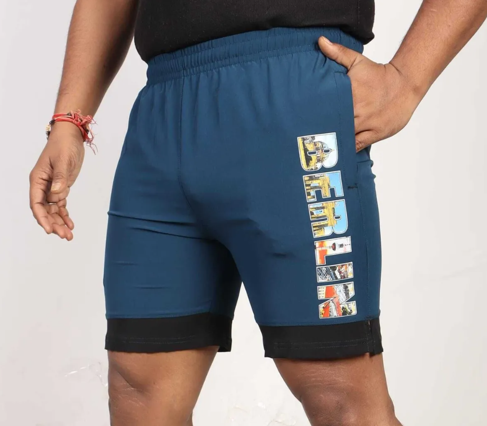 Blue Lycra Blend Polyester Elasticated Solid Shorts For Men