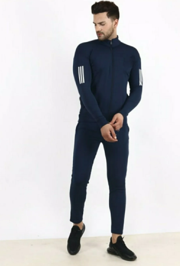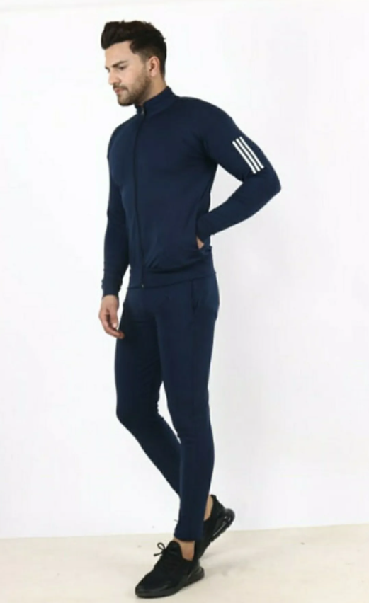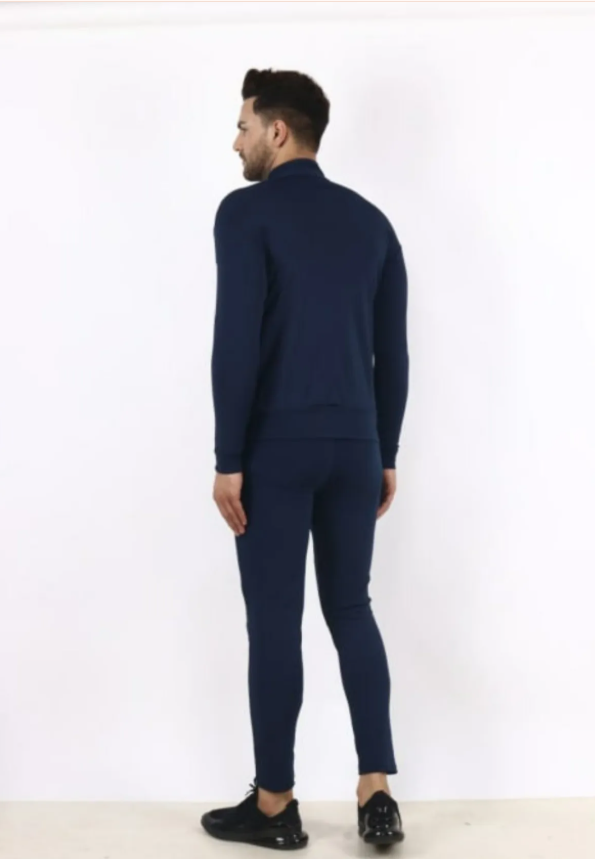 Blue Lycra Blend Polyester Full Zip Solid Track Suit For Men