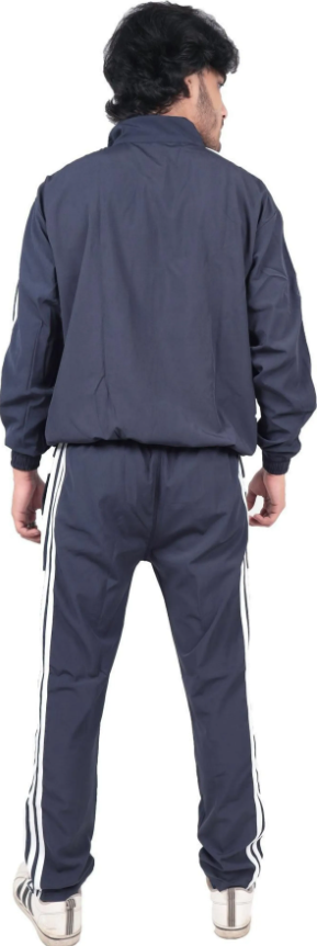 Blue Polyester Blend Full Zip Striped Solid Track Suit For Men