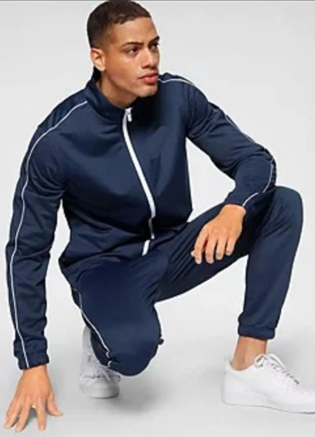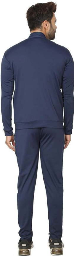 Blue Polyester Blend Solid Track Suit For Men