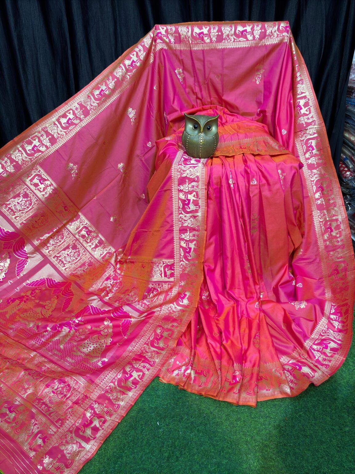 Blush Royale Pink & Gold Handcrafted Bishnupuri Silk Saree