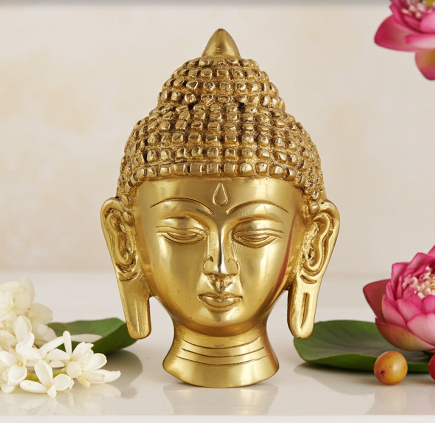 Brass Buddha Face Idol – Spiritual Home Decor Statue