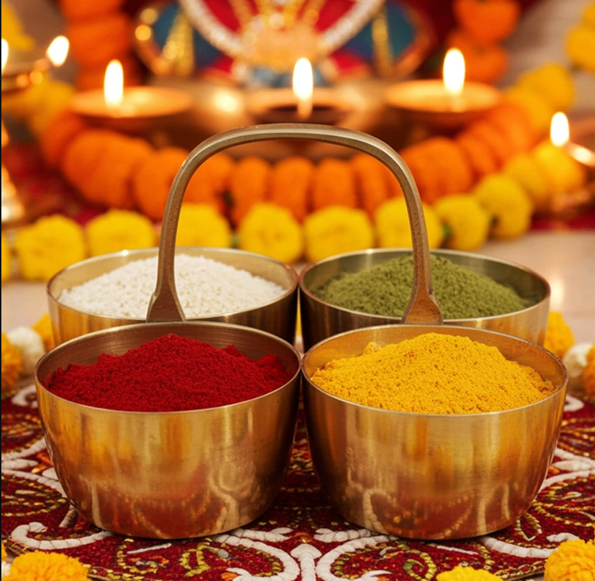 Brass Chokta Small 4 Bowl Combined