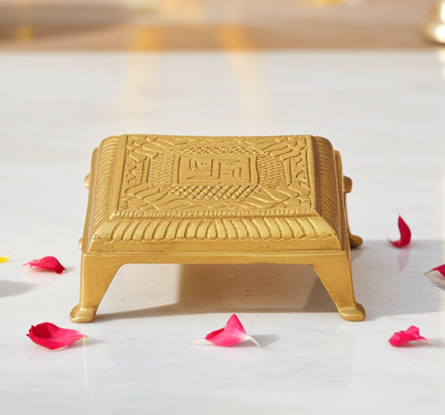 Brass Chowki Showpiece – Decorative Puja Stand for Idol