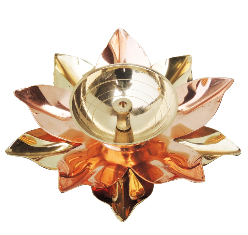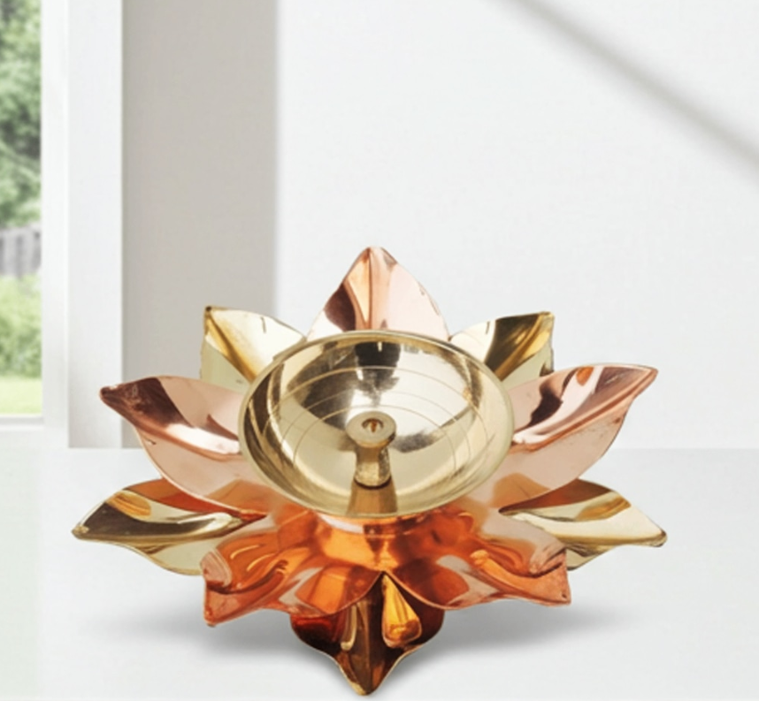 Brass & Copper Deepak, Oil Lamp - Dual Metal Deepak for Puja Décor
