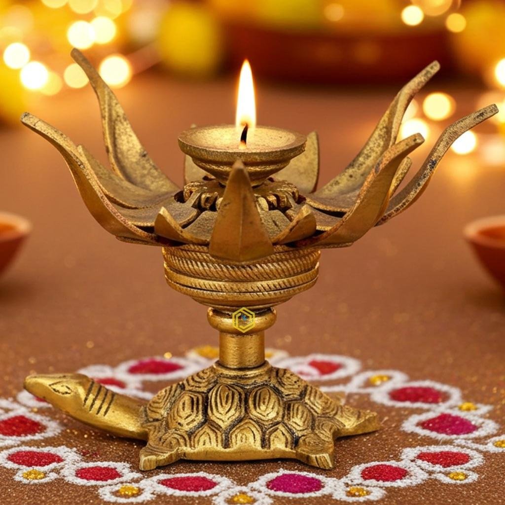 Brass Curved Metal Flower Candle Holder On Tortoise