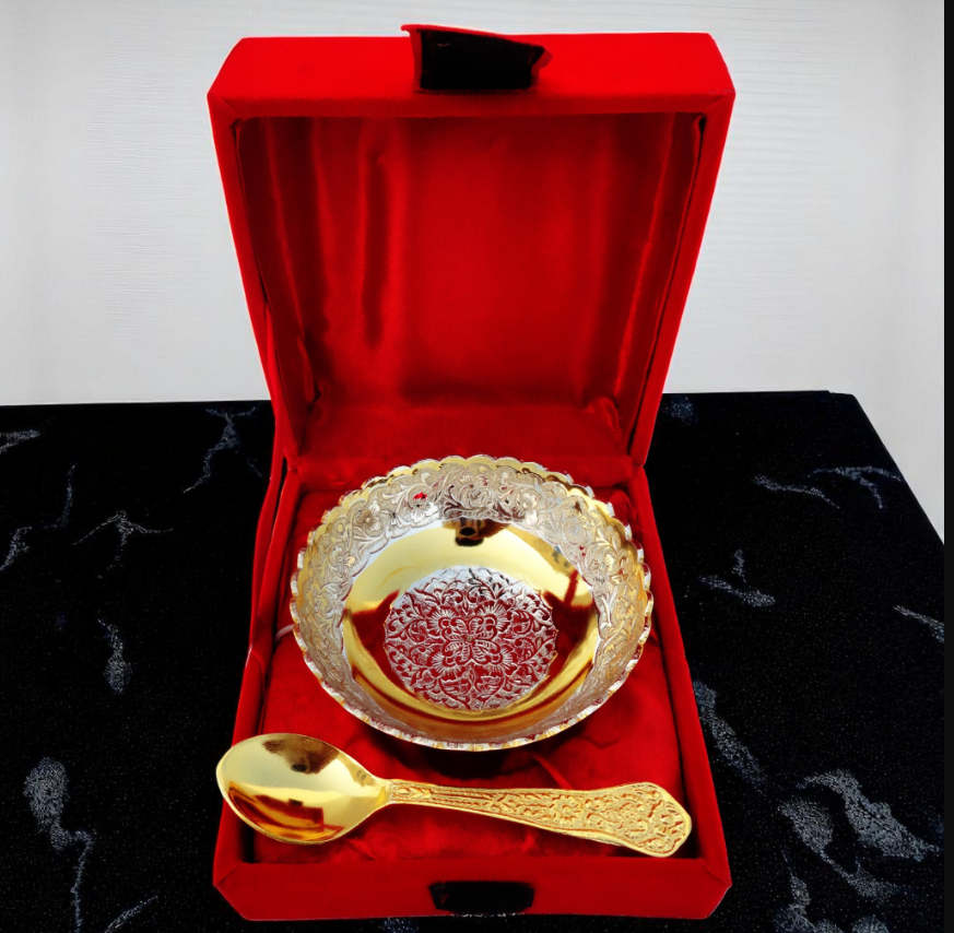 Brass Decorative Bowl Do Patti 2 Tone With Spoon