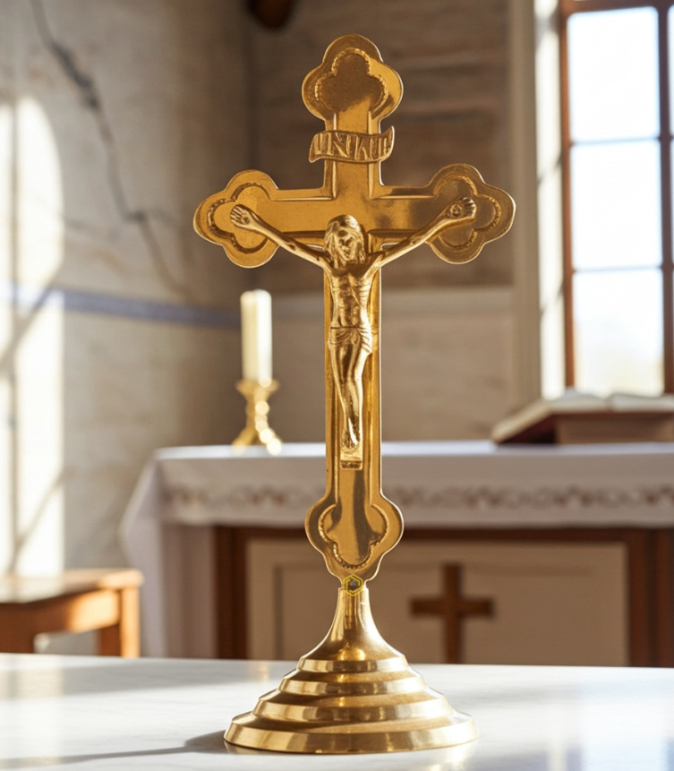 Brass Decorative Showpiece Jesus On Cross – Christian Religious Wall Décor Showpiece