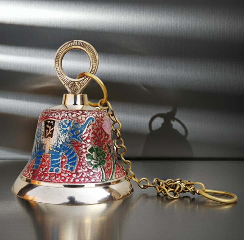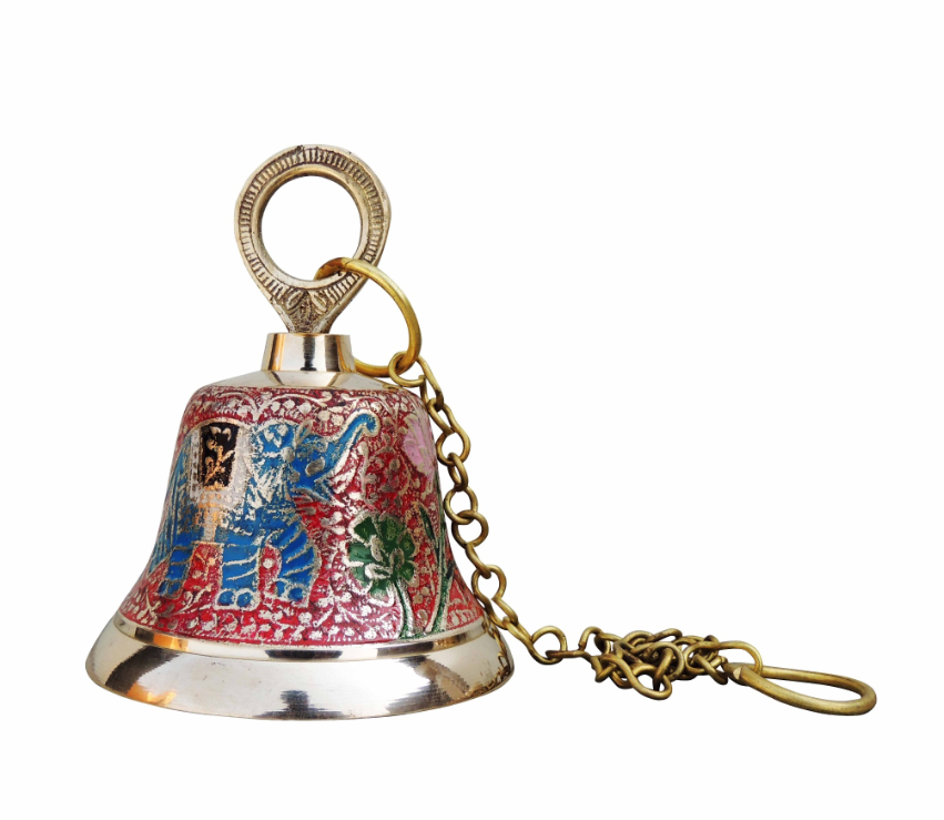 Brass Hanging Temple Pooja Bell, Bell Red Color