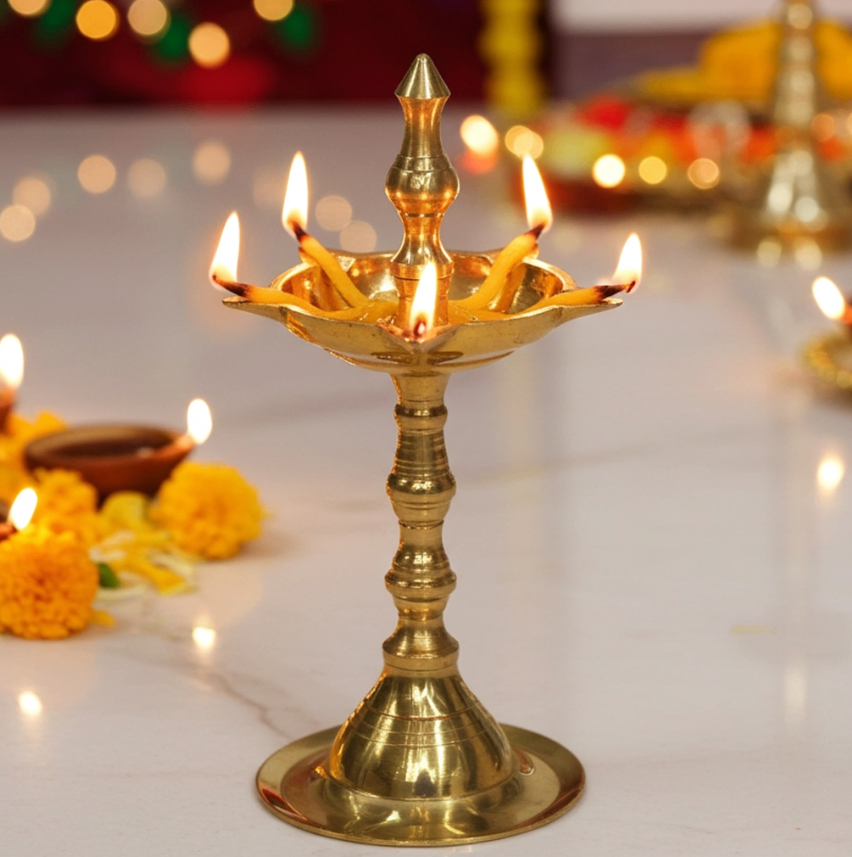 Brass Kerala Fancy Deepak, Oil Lamp No. 1 - Elegant Brass Deepak for Daily Puja