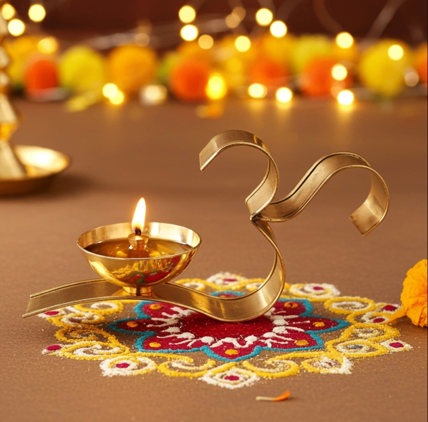 Brass Om Fancy Deepak No. 3