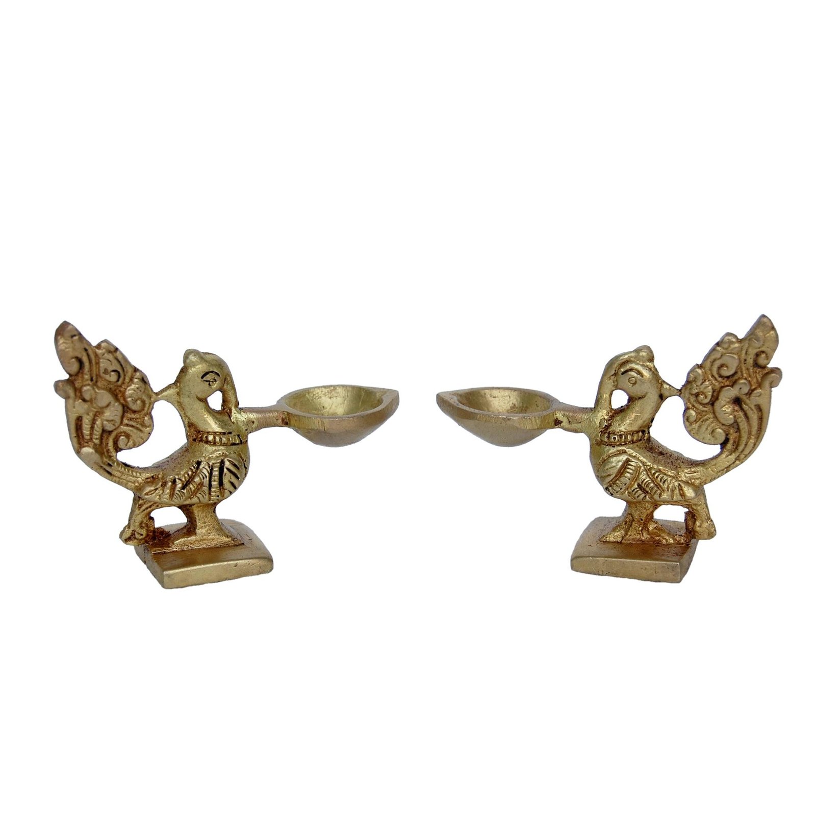 Brass Pair Of Bird Oil Lamp Deepak - Twin Bird Design Puja Diya,