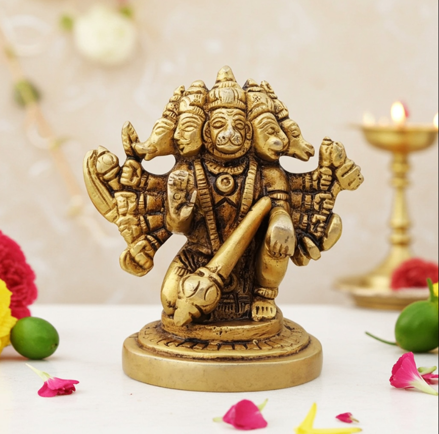 Brass Panchmukhi Hanuman Ji God Idol Statue – Devotional Showpiece
