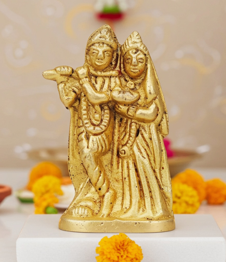 Brass Radha Krishna God Idol – Decorative Temple Showpiece