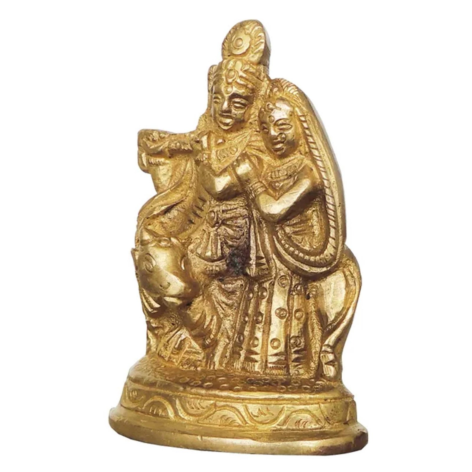 Brass Radha Krishna With Cow – Divine God Idol Showpiece