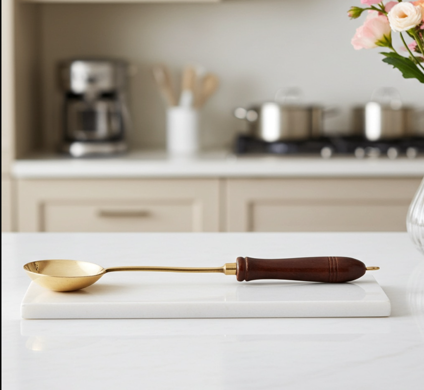 Brass Ramcha With Wooden Handle
