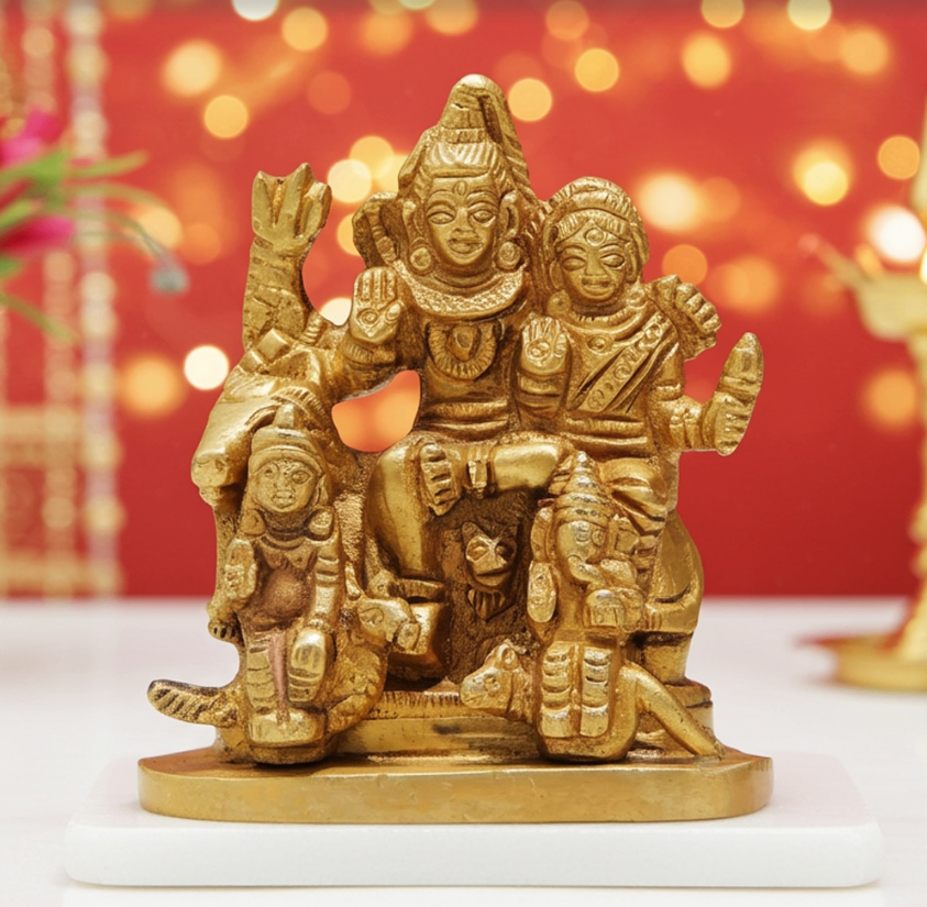 Brass Shiv Parivar Small Idol – Compact Home Temple Murti