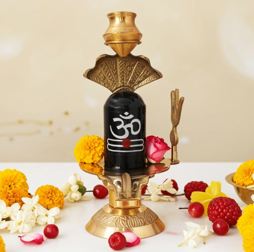 Brass Shivling With Black Stone – Size 3 Pooja Lingam, 5