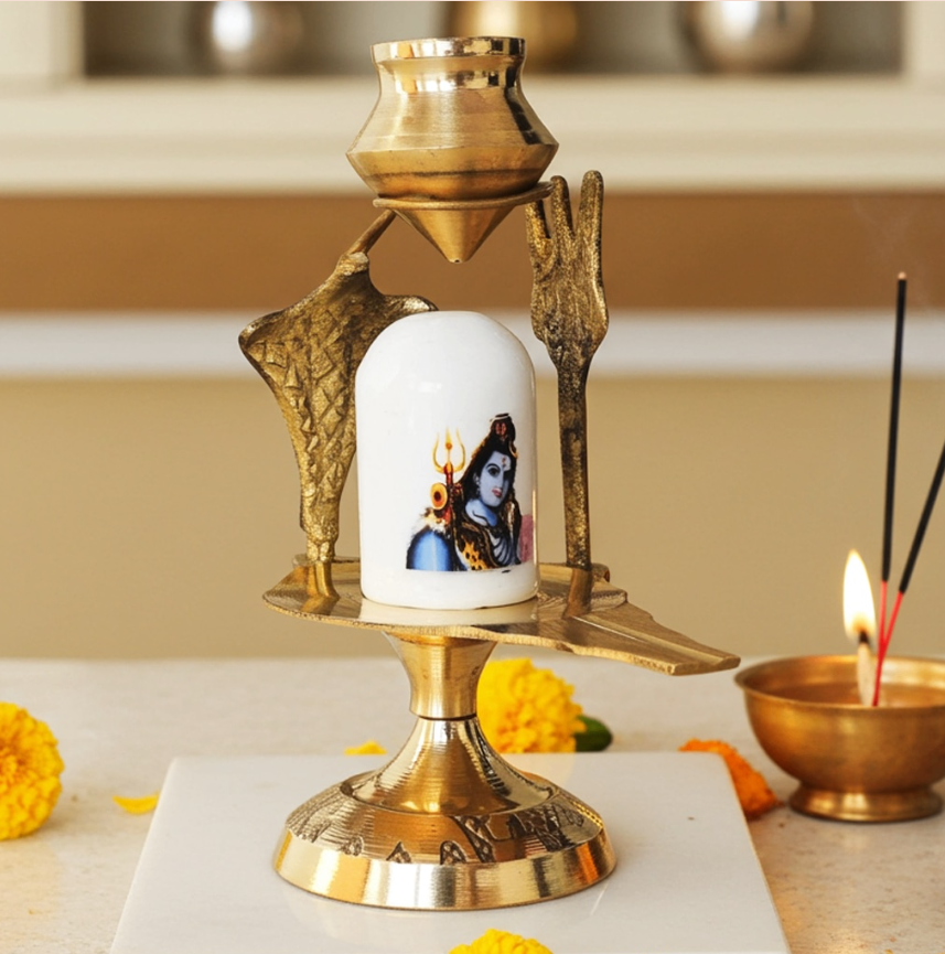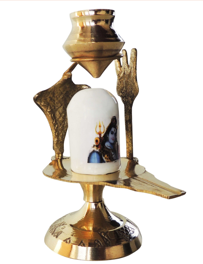 Brass Shivling With White Stone – Size 1 Traditional Lingam, 4 Inch