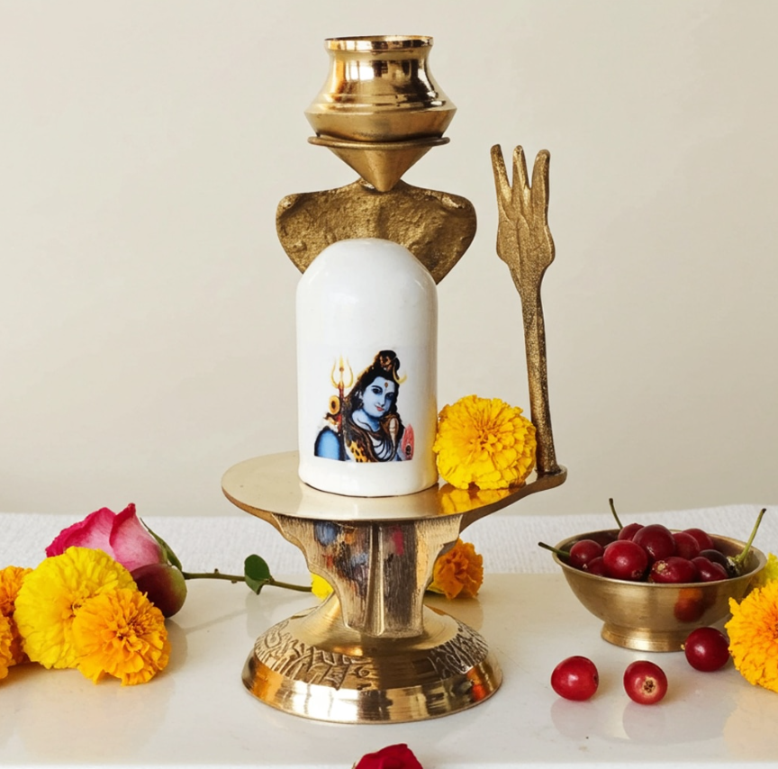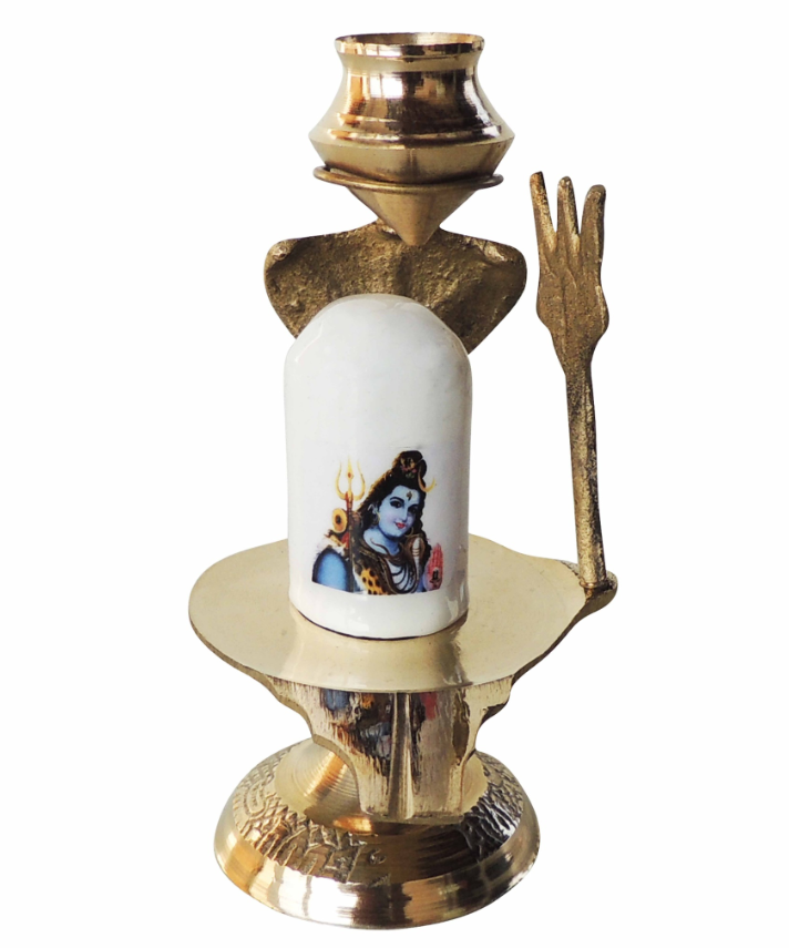 Brass Shivling With White Stone – Size 2 Devotional Lingam, 4