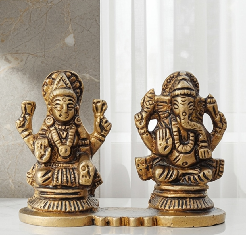 Brass Showpiece Laxmi Ganesh One Same Base God Idol Statue