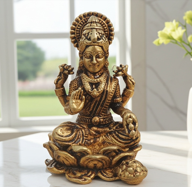 Brass Showpiece Laxmi Ji God Idol Statue, Made From Machine
