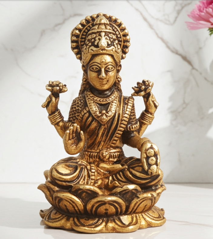 Brass Showpiece Laxmi Ji God Idol Statue, Made From Machine