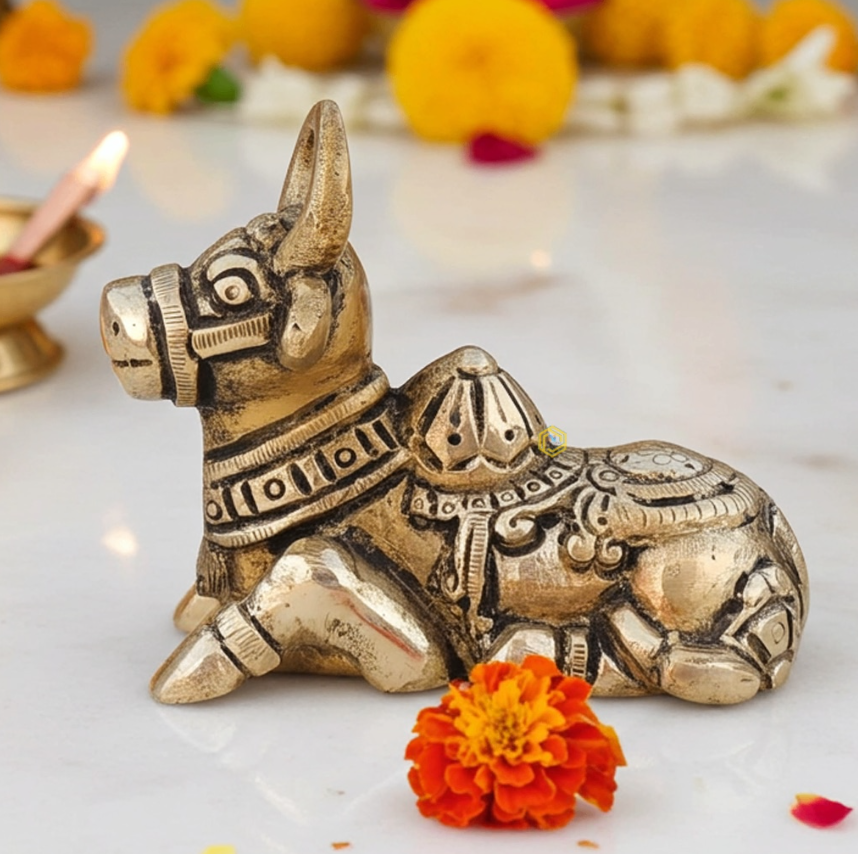 Brass Showpiece Nandi God Idol Statue – Sacred Pooja Décor
