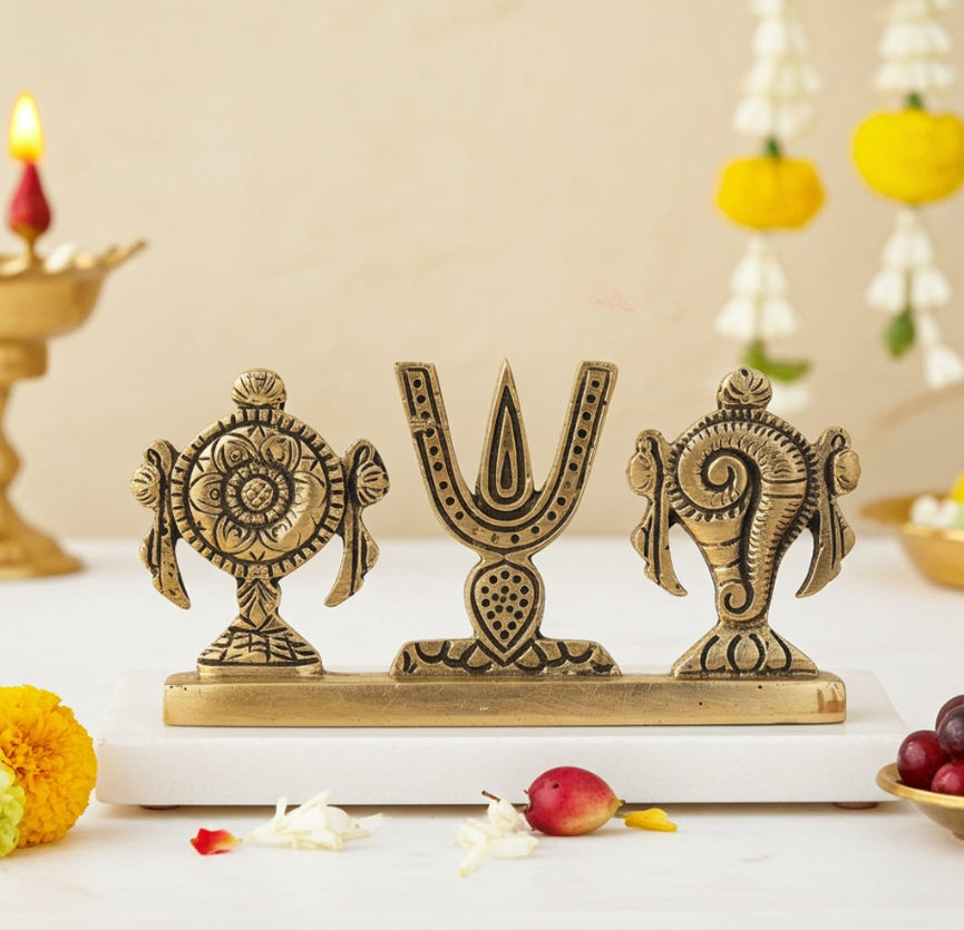 Brass Showpiece Shankh Chakra Namah God Idol Statue