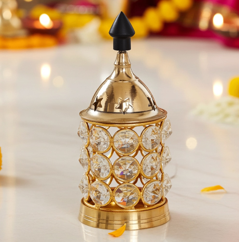 Brass Table Decor Oil Lamp Deep Jyoti No. 1 - Small Brass Oil Lamp for Daily Puja