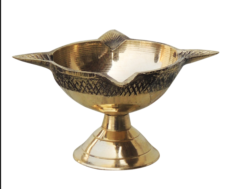 Brass Table Decor Oil Lamp Deepak 4 Wicks - Handcrafted Deepak for Mandir Use