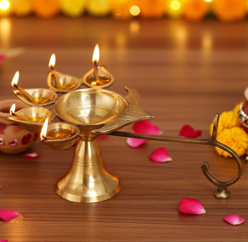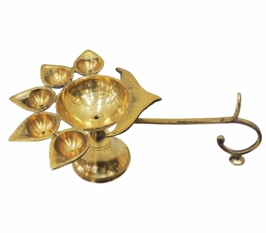 Brass Table Decor Oil Lamp Deepak 5 Wicks - Handmade Puja Deepak for Festival Use