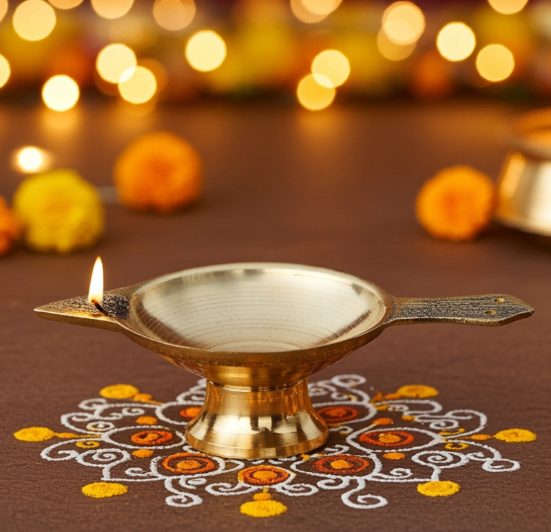 Brass Table Decor Oil Lamp Deepak No. 0 - Small Brass Deepak for Daily Puja