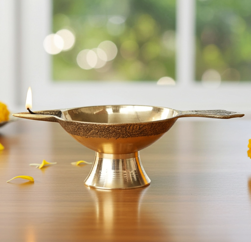 Brass Table Decor Oil Lamp Deepak No. 3 - Traditional Brass Diya for Temple Lighting