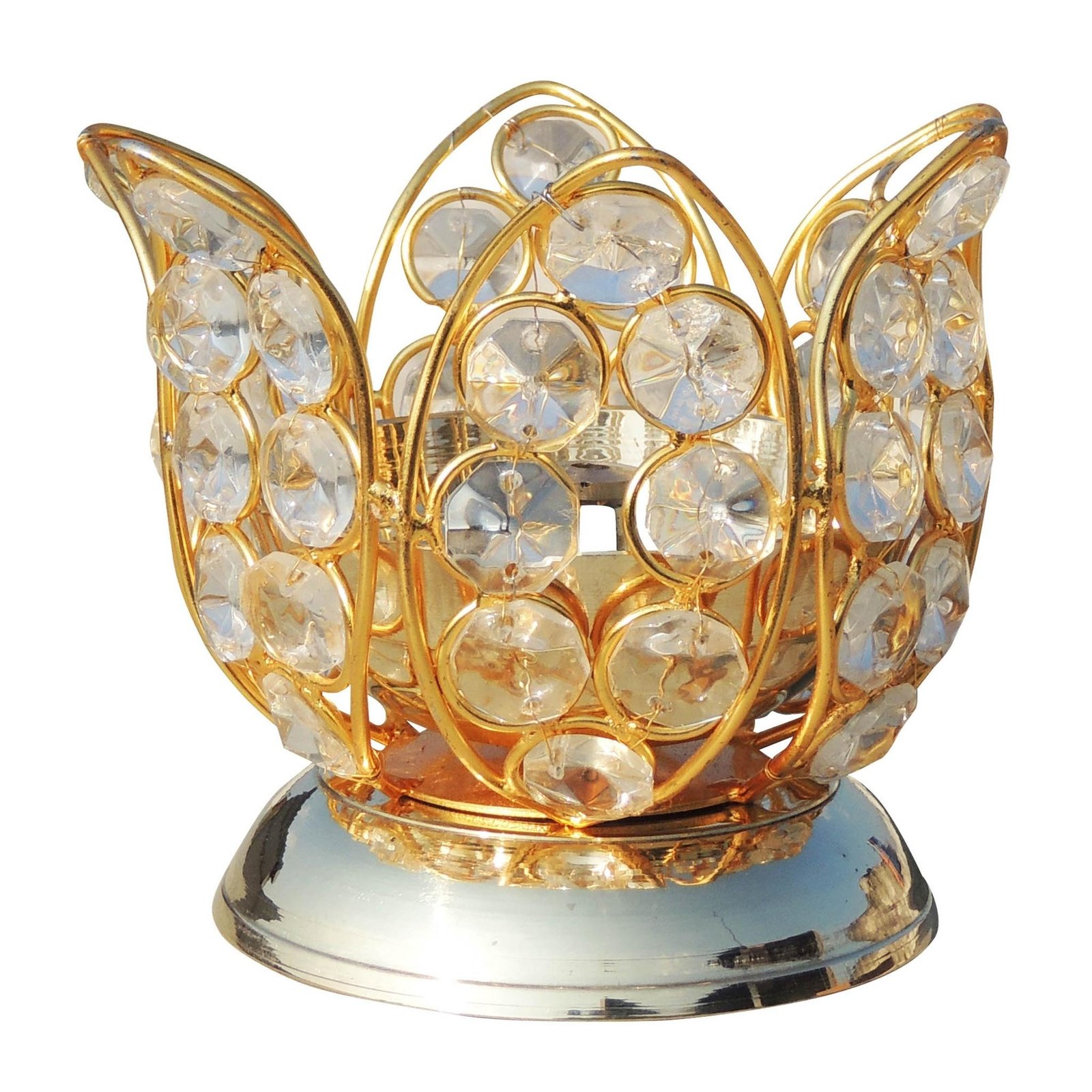 Brass Table Decor Oil Lamp Deepak With Crystal - Antique Deepak for Aesthetic Décor