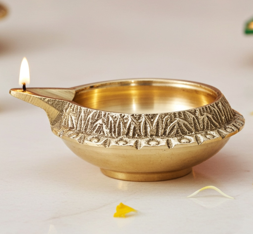 Brass Table Decor Oil Lamp Kuber Deepak - Prosperity Brass Oil Lamp for Home Mandir