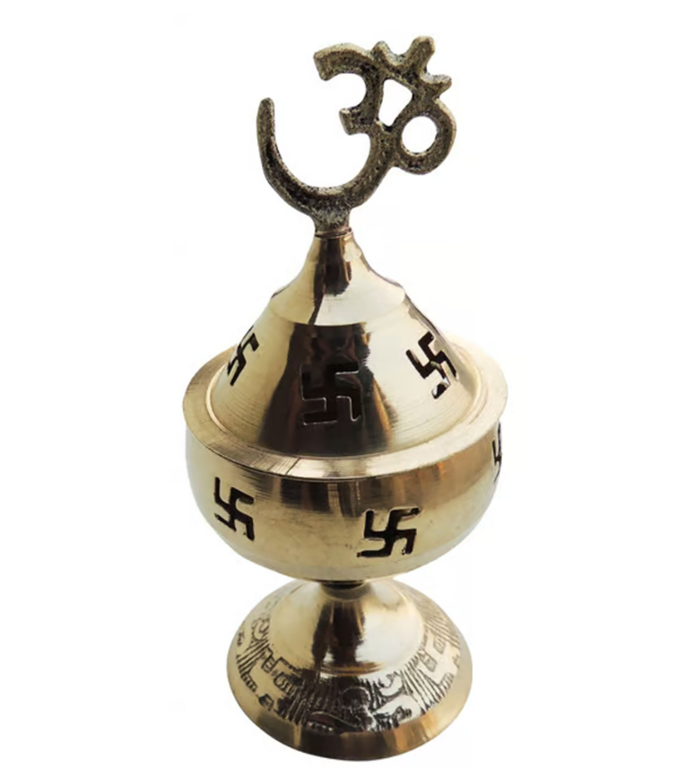 Brass Table Decor Oil Lamp Om Pakija Deepak - Graceful Brass Oil Lamp for Temple