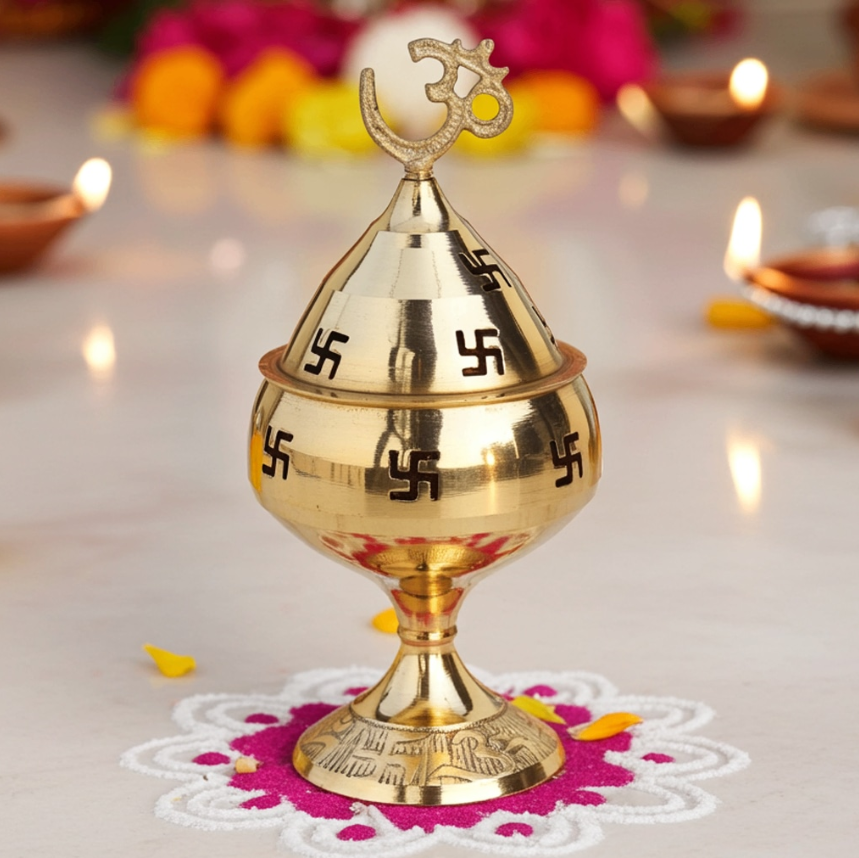 Brass Table Decor Oil Lamp Om Pakija Deepak - Premium Brass Lamp for Puja Décor