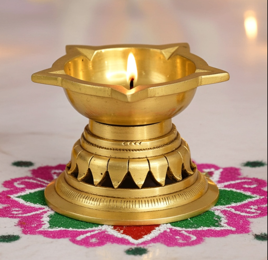 Brass Table Decor Panchmukhi Stand Deepak, Oil Lamp - Five Face Oil Lamp for Temple Aarti