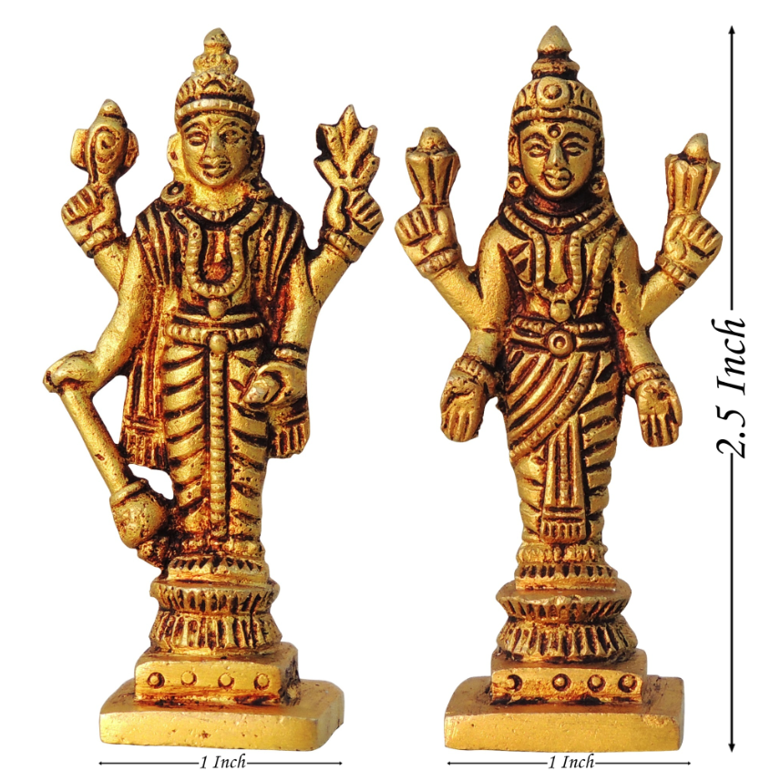 Brass Vishnu & Laxmi Ji Idol Pair – Divine God Statue Set